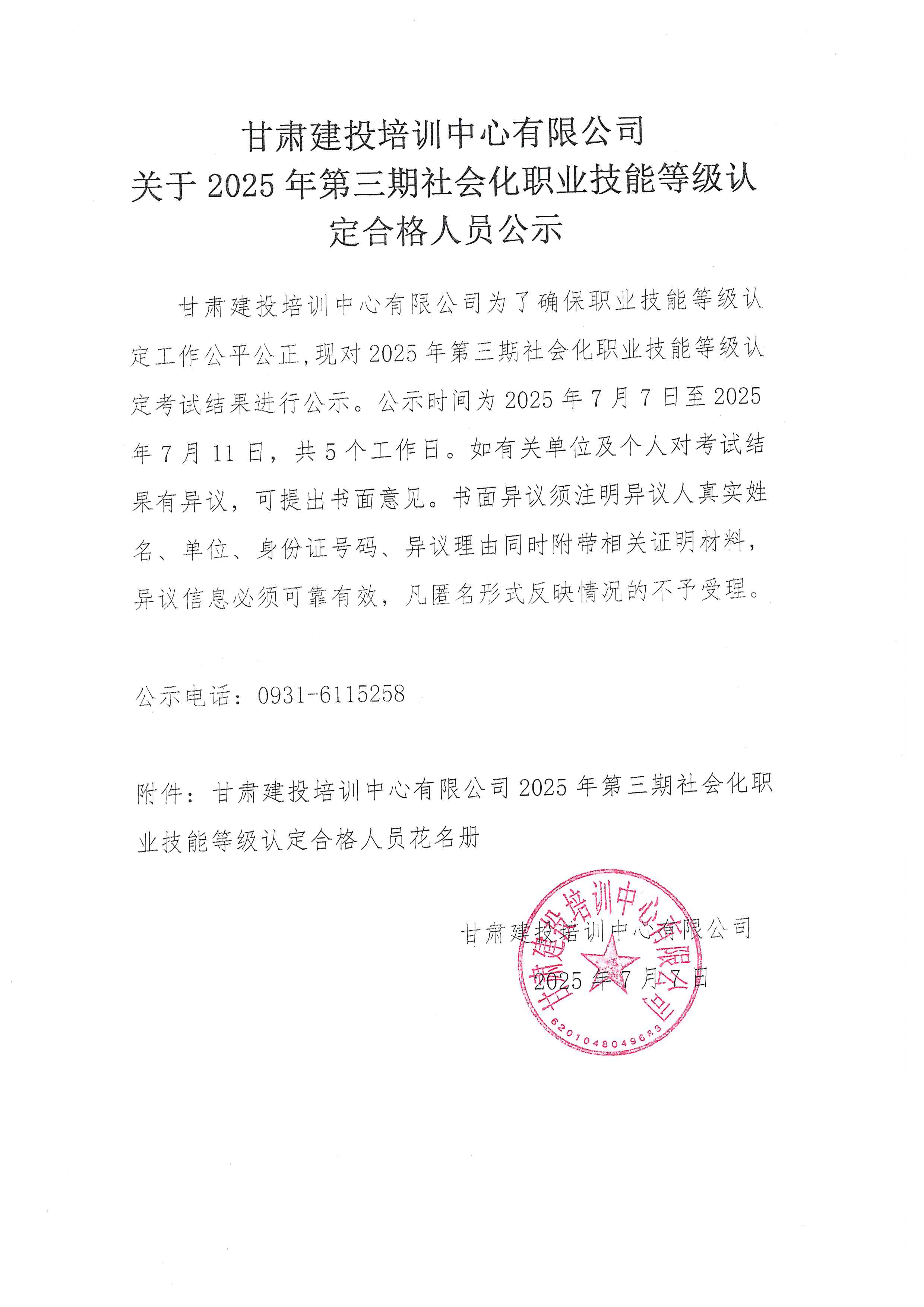 甘肅建投培訓(xùn)中心有限公司關(guān)于2025年第三期社會化職業(yè)技能等級認(rèn)定合格人員公示